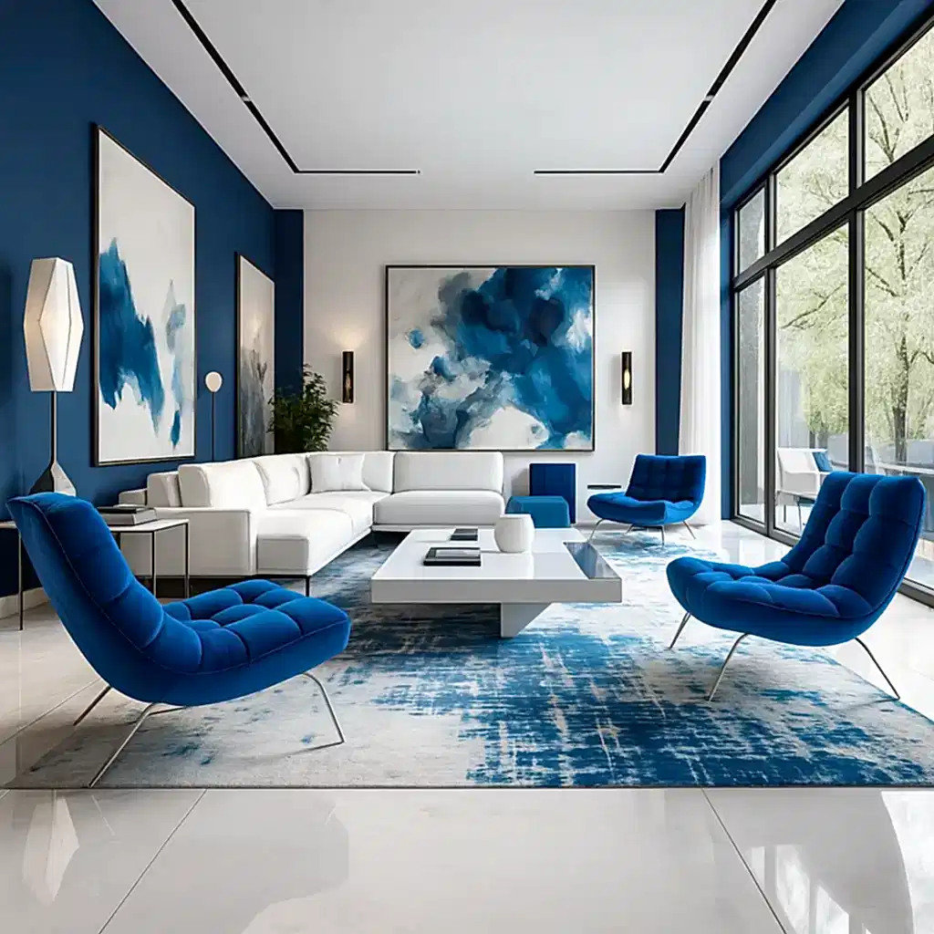 Küçük Kontrast Noktaları Ekleyin: Tamamen tek renk bir mekan yerine, çok küçük ve stratejik noktalarda nötr (siyah, beyaz, gri) veya tamamlayıcı renklerde objeler kullanarak gözü dinlendirebilir ve odak noktaları oluşturabilirsiniz. Örneğin, lacivert bir odada küçük bir pirinç vazo veya beyaz bir heykelcik. Bu,modern dekorasyonda sıkça kullanılan bir yöntemdir.